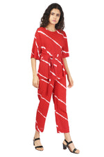 A trans-seasonal shibori stripes co-ord! The top features a front belt for an adjustable waist. The pants have half elastic belt for comfort fit.